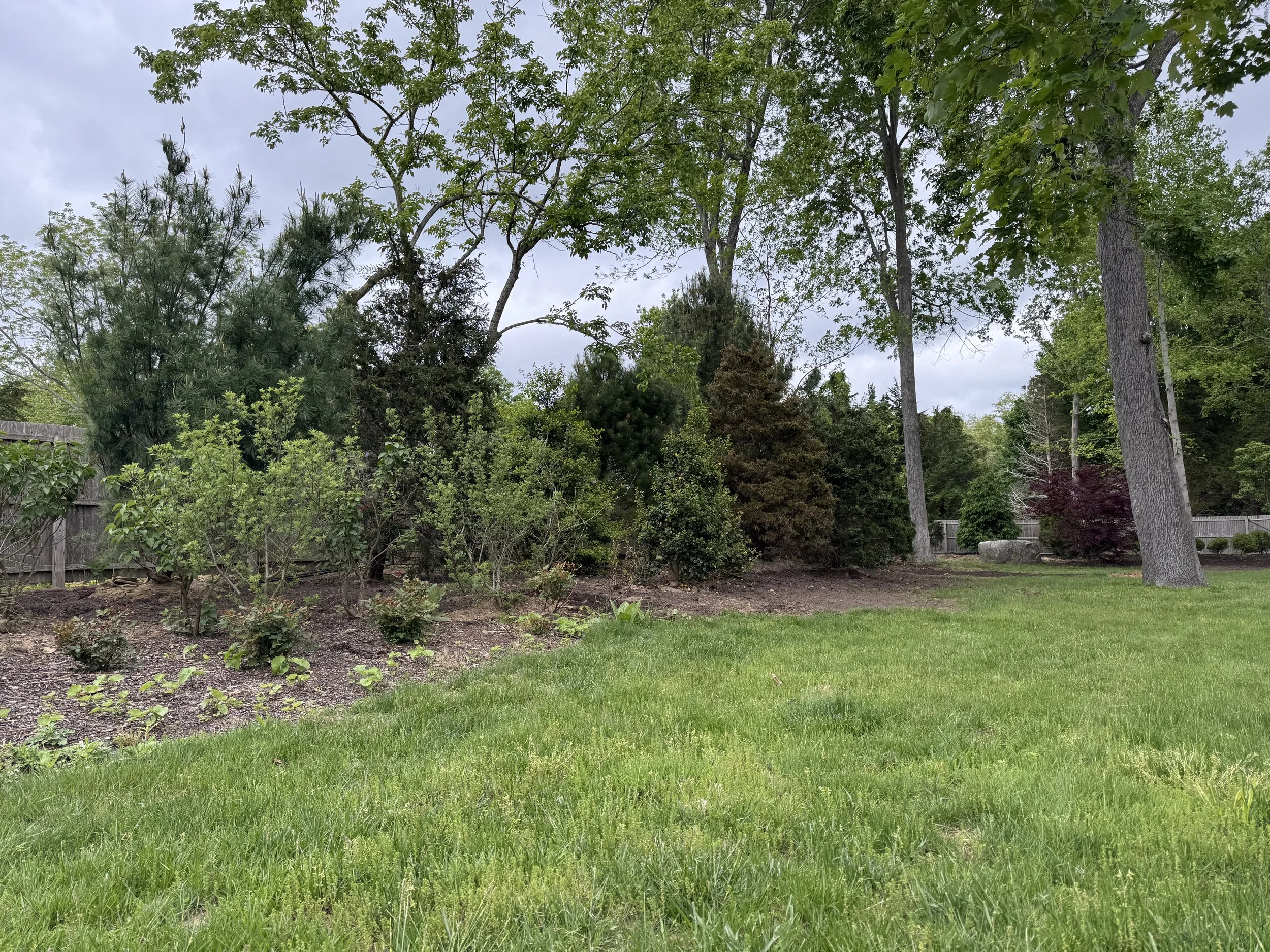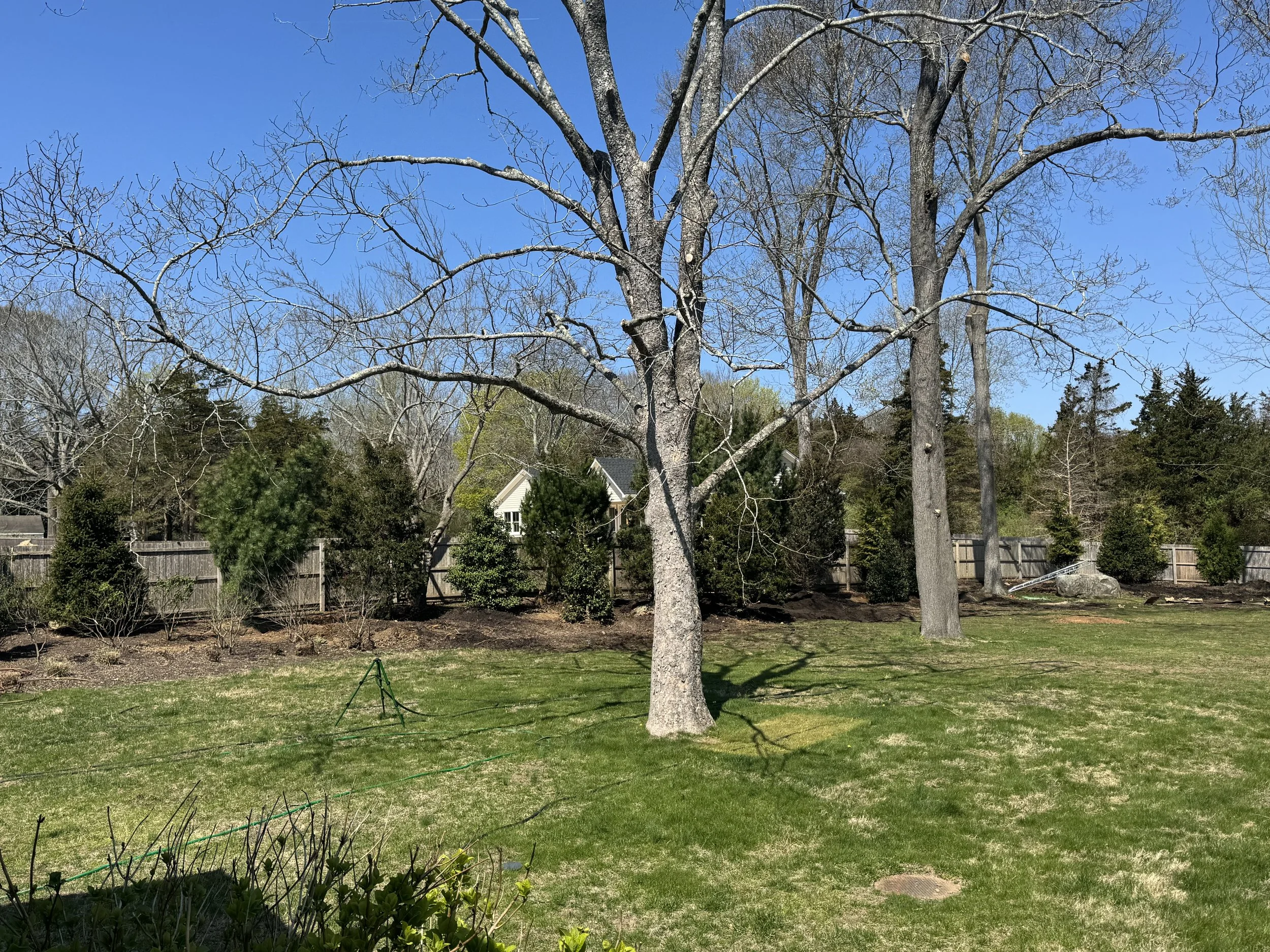 Before and underway of a screening project, the previous landscape did not cover the new build being done by the neighbor.